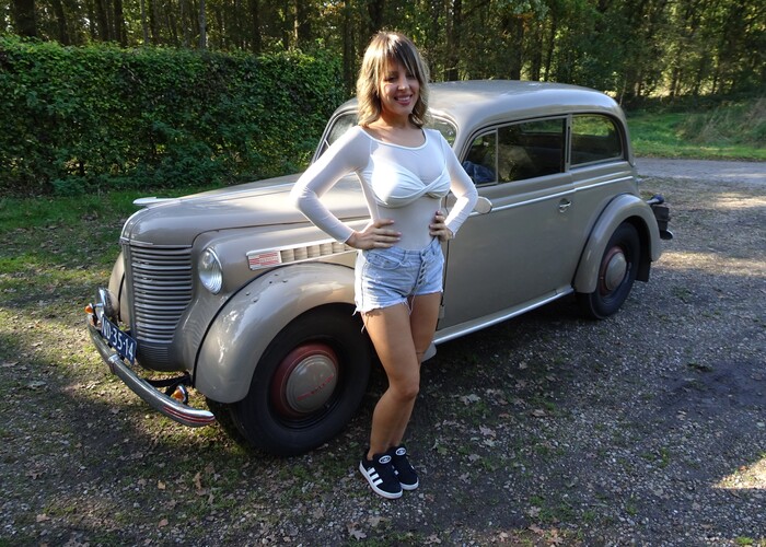 Italian model Isabella took the Opel out for a drive for the first time. However, she did not know that finding the right gears is difficult and shifting quite a struggle in the Opel. Resulting in loud gear grinding and stalling. Lots of action during her driving.